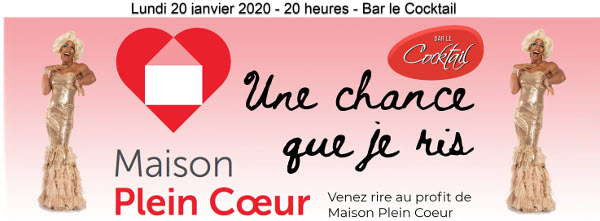 Une chance que je ris ! C'est vrai. Parce que des fois, la vie est tellement pas drôle. Aussi bien rigoler. Les psy s'entendent pour le dire : rire est bon pour la santé mentale. Alors économisez des centaines de dollars. Venez rire avec nous pour une fraction du prix d'une thérapie. Et on rit pour une bonne cause, Maison Plein Coeur, un organisme qui soutient les personnes vivant avec le VIH à Montréal. Les profits seront versés à l'organisme. Une brochette d'artistes dont Mark Hrynioch / True Devil, Luc Boily - Humoriste, Pascale Cormier, Julie Vaillancourt / Julie Curly, Thomas Leblanc, Angélique Duruisseau et Denis-Martin Chabot, journaliste / auteur / comédien / acteur seront sur scène avec Barbada de Barbades qui animera la soirée. |