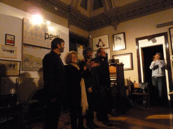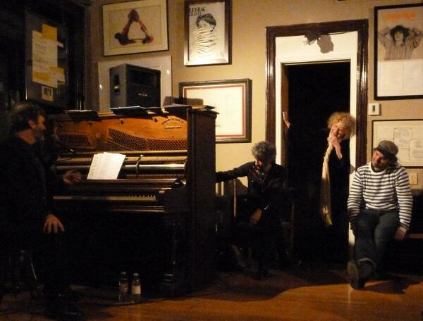 ![]() Pierre Flynn, avec Éric Goulet, Denise Boucher et Alexandre Belliard derrière le piano |
